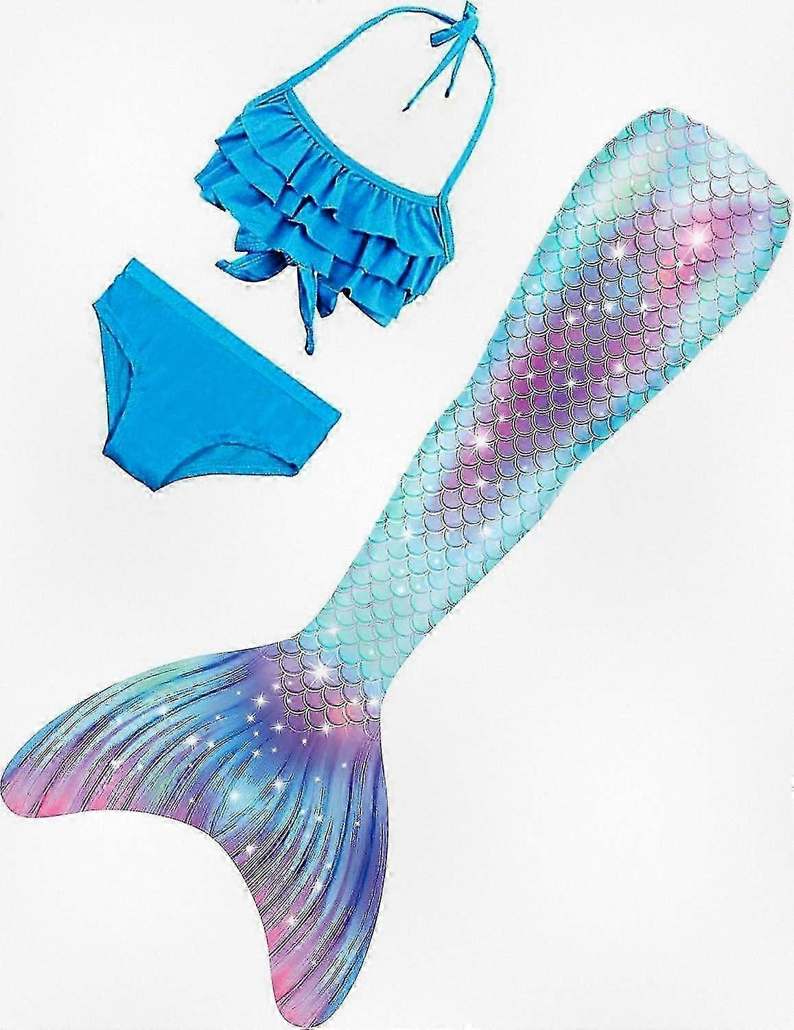 25-26 Kids 3-Piece Mermaid Swimsuit Set for Girls, Perfect for Swimming and Beach Fun, No Monofin Included