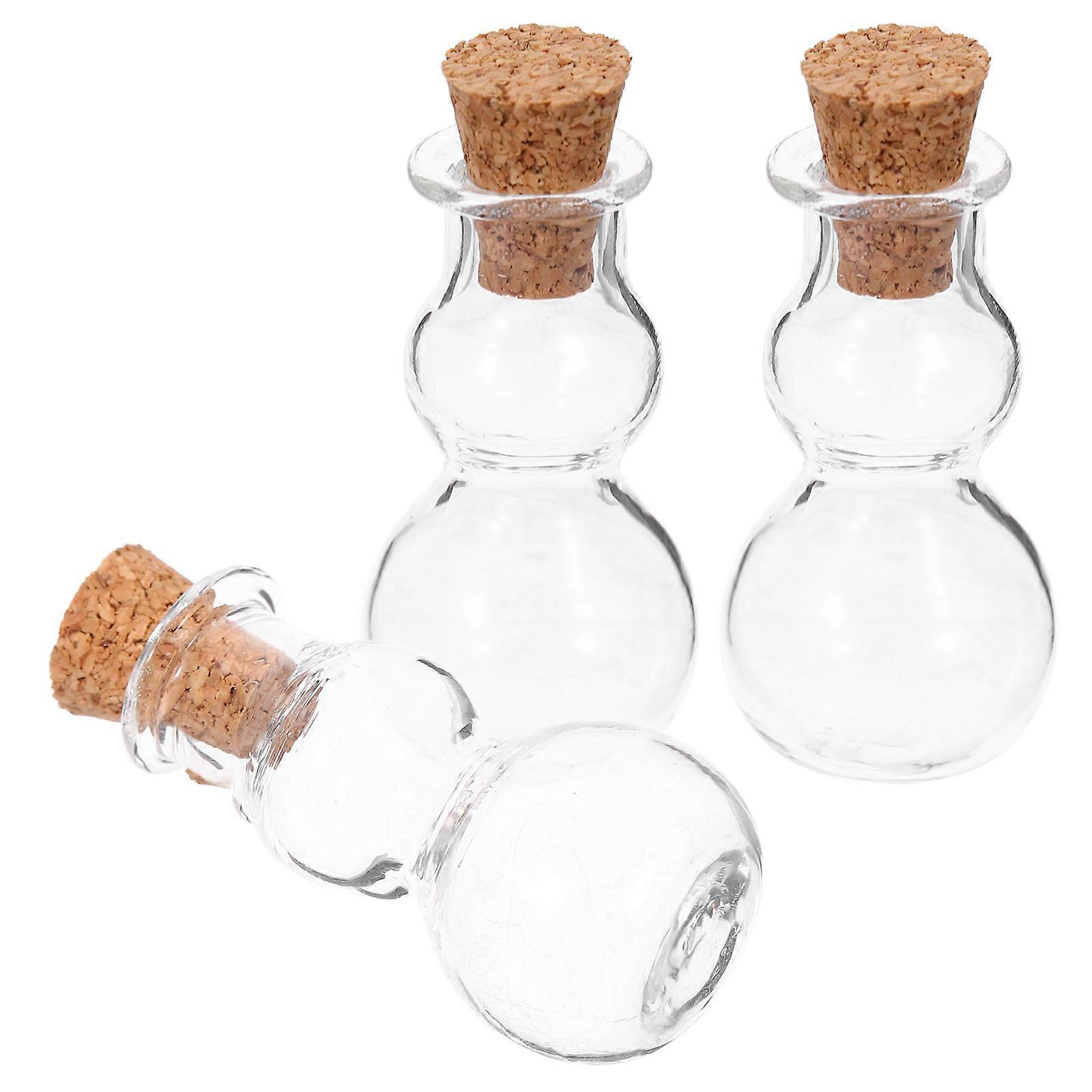 DIY Glass Wishing Bottles Gourd Shape for Decorating 3Pcs Corked Jars