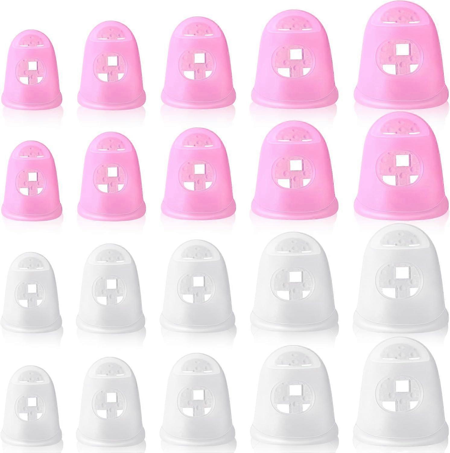 20Pcs Rubber Finger Tips, Guitar Fingertip Protector Pads, Breathable Thimble Finger Grips for Sorting Paper, Money Counting, Hand Sewing - 5 Sizes, W