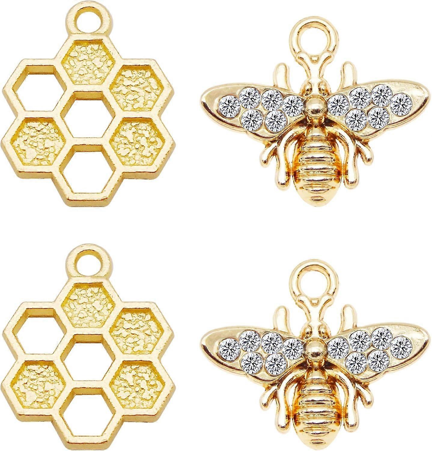 30PCS Gold Plated Crystal Bee Honeybee Charms Beehive Honeycomb Pendant Jewelry Necklace Bracelet Earrings DIY Making Findings Crafts