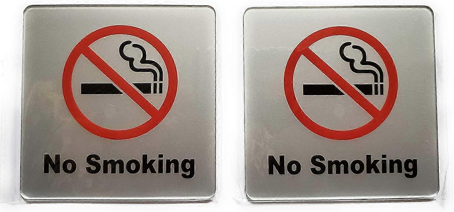 (2 Pack) No Smoking Sign 4x4'' (Acrylic-Classic) with 3M Self Adhesive; Rust Free; For Car, Business, Indoor, or Outdoor Use Black and Red and Silver