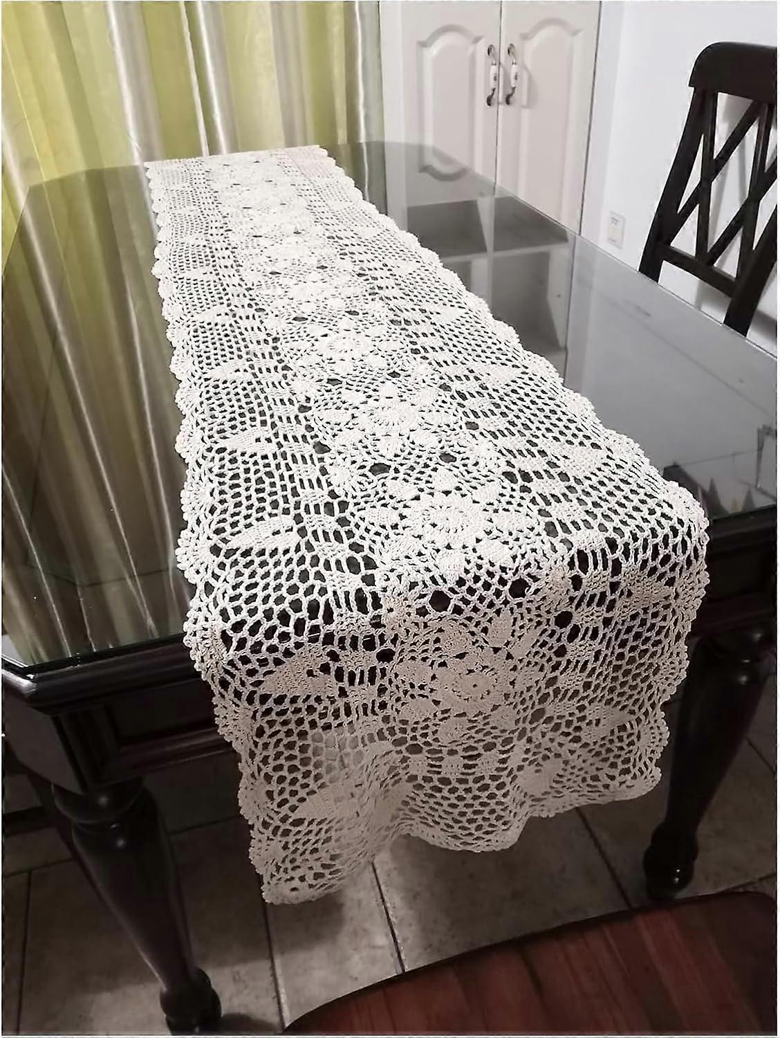 Cotton Handmade Crochet Rectangular Floral Lace Table Runner Dresser Scarf Doilies Rectangle Coffee Table Dresser Decor (Beige, 16"x71"/40*180cm) Beig