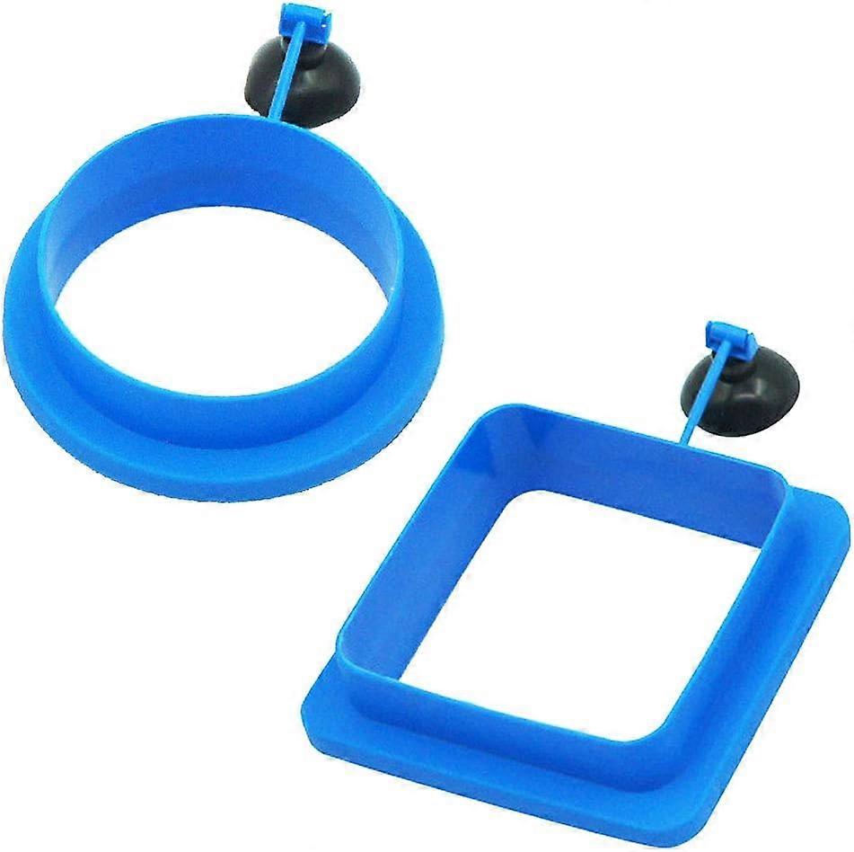 2 Pcs-Set Fish Tank Feeding Ring Plastic Floating Food Feeder Circle and Square with Suckers Circle + Square Feeder