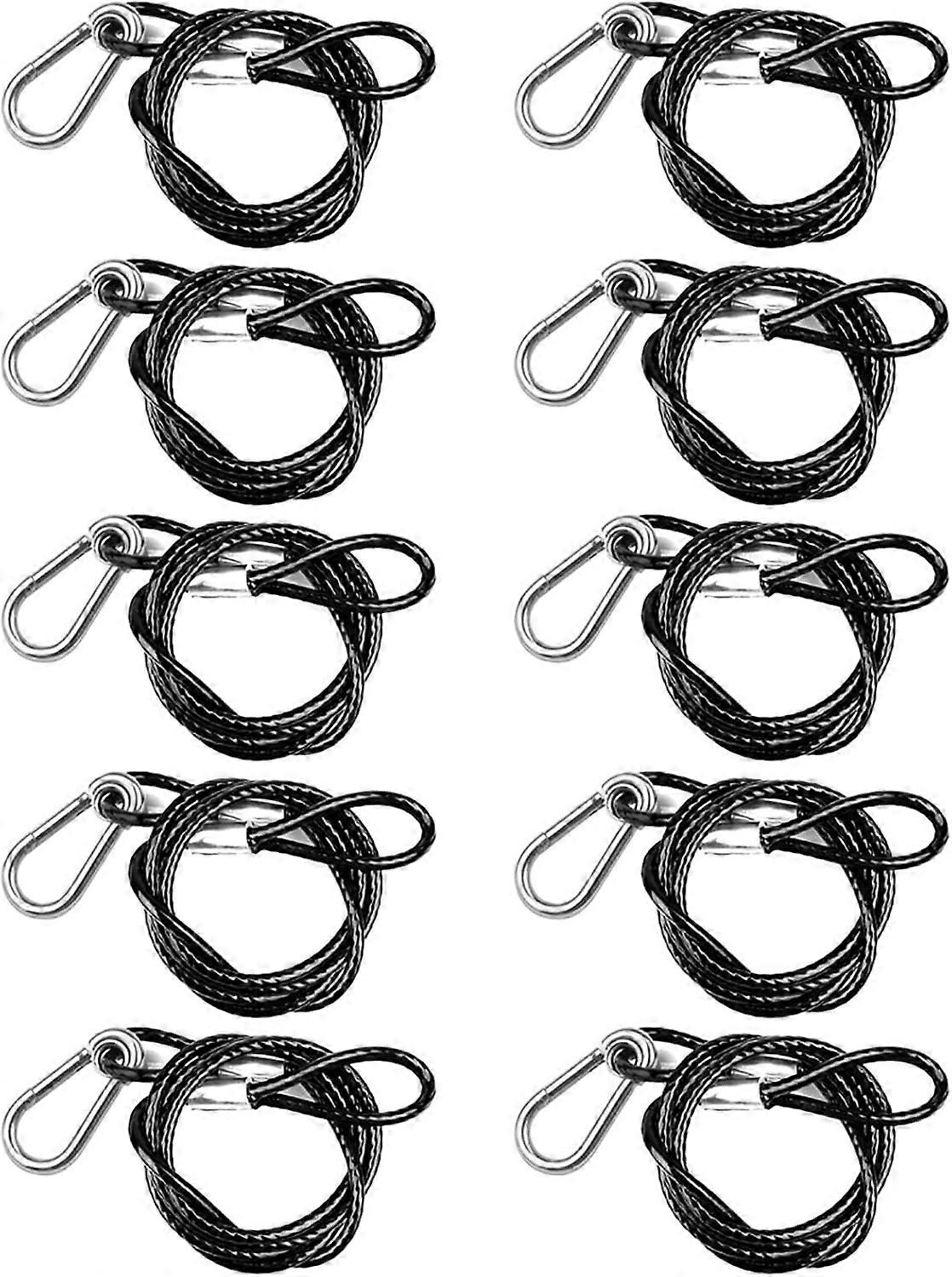 10 PCS 3FT Safety Cable Black Coated Braided Stainless Steel Security Rope Max.Load 110lb for DJ Stage Lighting Par Light Moving Head Light
