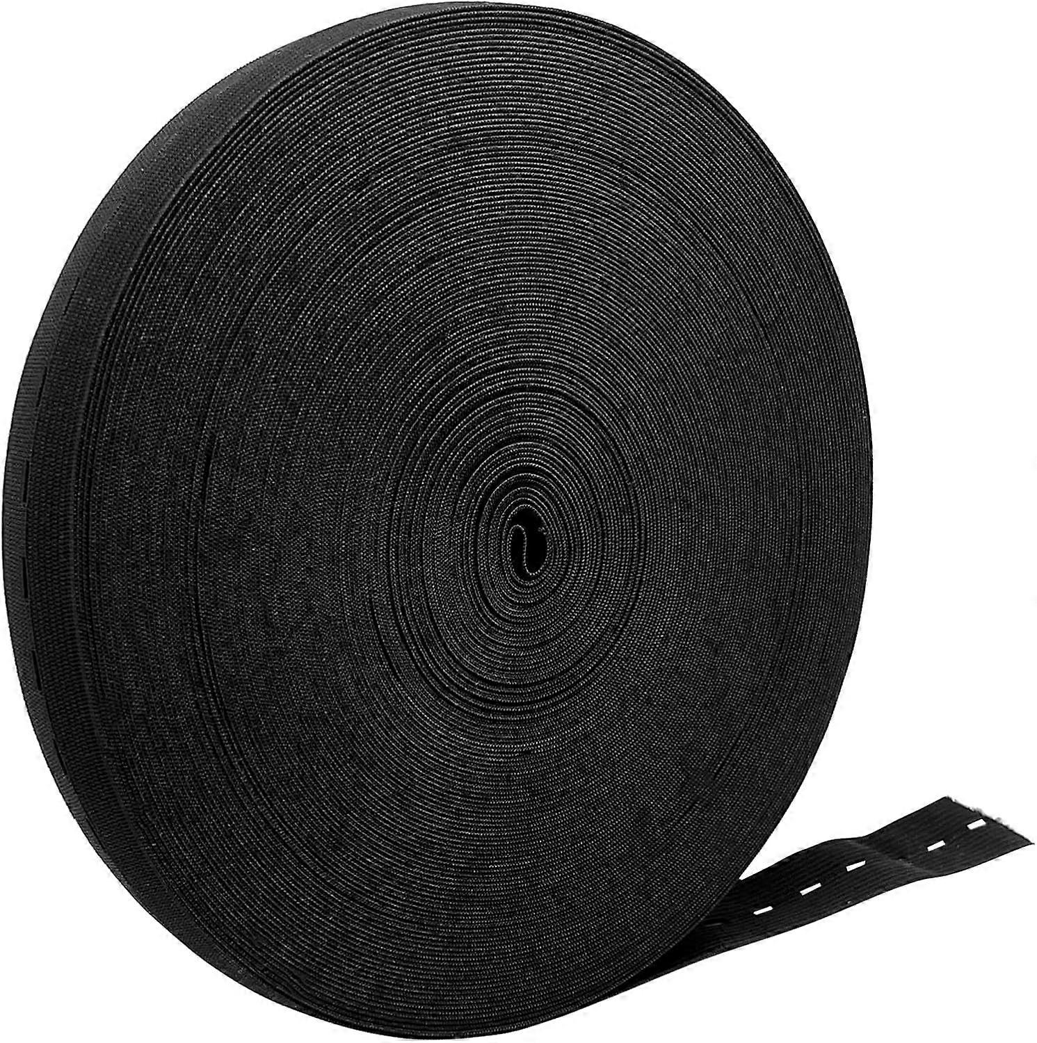 1 Roll 32Yard Flat Sewing Stretch Band Spool with Buttonholes,25mm(1Inch) Wide Elastic Knit Stretch Band,for Crafting, Sewing(Black) Black Black 32Yar