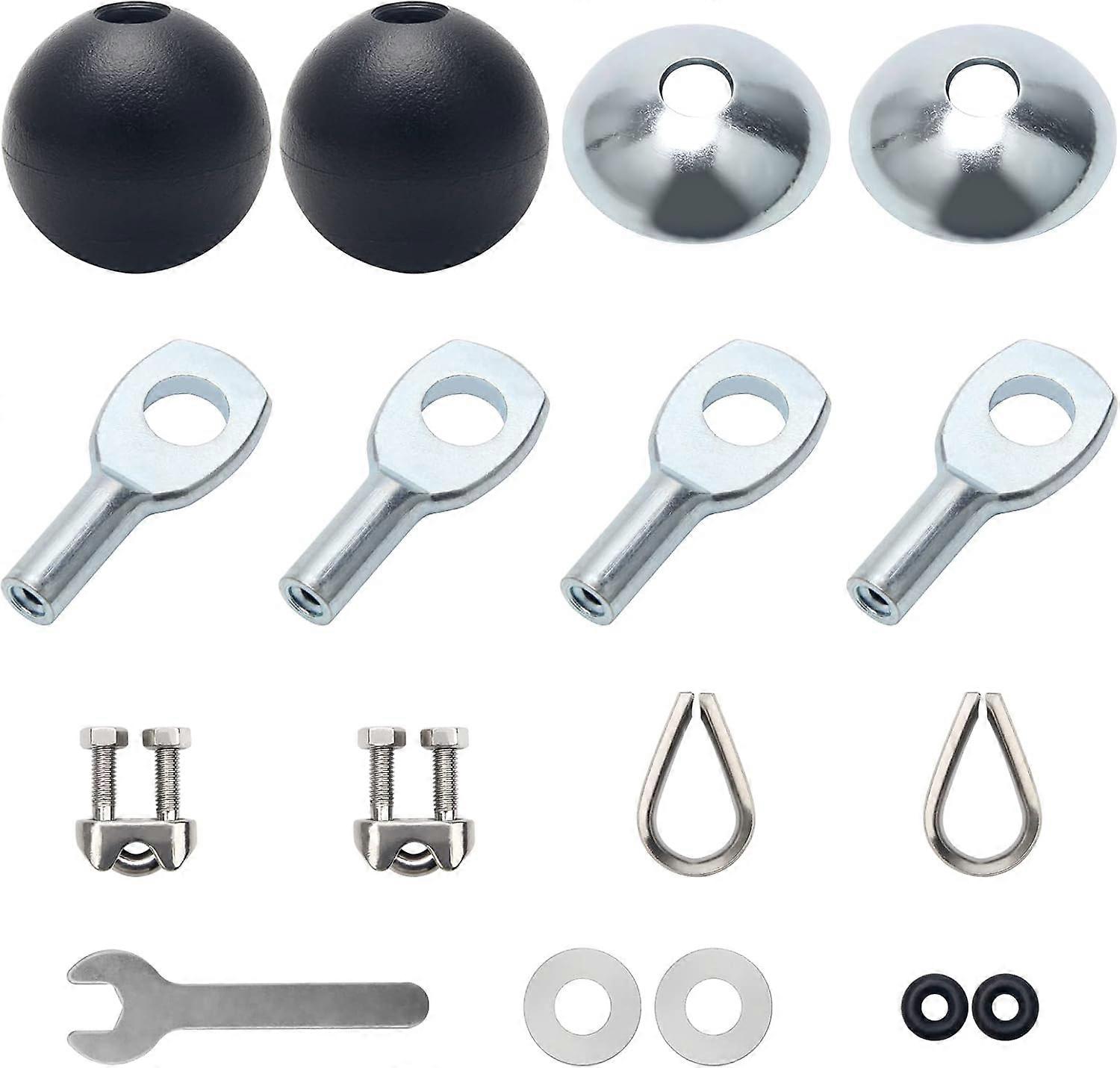 <p>High-quality Material--The cable attachments for gym is made of high-quality stainless steel for lasting, durable and not easy to rust, corrosion-resistant and friction-resistant. Suitable for replacement home gym cable accessories.Rope Attachment For Cable--The black gravity ball has a diameter of 4 cm and a hole diameter of 1 cm. With bowl-shaped plates, metal eyelet terminals, spacers, and limit black rings, nested on the cable can form a stop ball to prevent the cable from shaking during fitness.4Pcs Metal Eyelet Terminals--The metal eyelet terminal is fit for fitness pulley cables with a diameter of 5mm and an inner steel wire diameter of 3mm. A tool such as a hydraulic crimper/ pliers is required to embed the cable into the metal eyelet terminal.Complete Tool--The package includes 17 pieces cable machine gym equipments, 2 black gravity balls, 4 metal eyelet terminals, 2 bowl-shape plates, 2 wire rope cable clip clamps, 2 sleeve clips, 2 spacers, 1 small wrench, 1rubber ring. Abundant gym equipment for home fitness cable, saving time and effort.Easy to Use--One end of the cable can be fixed with a rope clamp, a rope collar, and a wrench, easy to operate, strong and firm, not easy to drop, suitable for 5mm rope attachment for cable machine.</p>
