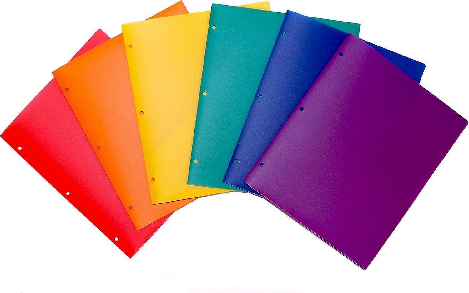 Plastic Folders with Pockets - Heavy-Duty 2 Pocket Folders, 6 Pack (Red, Orange, Yellow, Green, Blue, Purple) Colored Folders, for School and Homework