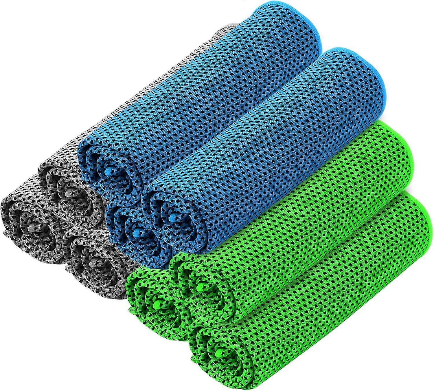 9PCS Snap Cooling Sport Towels for Neck Absorbent Microfiber Fast Drying Ice Towel for Yoga Gym Camping Fitness Running Exercise 3colors(light Blue,li