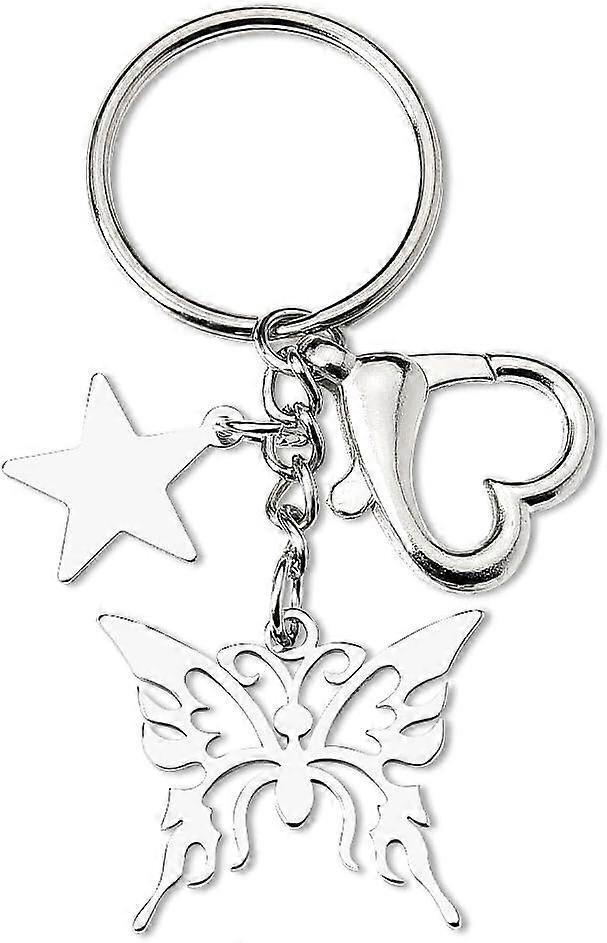 Butterfly Bag Charm Keychain for Women Girls Star Purse Charms Key Chains Key Ring for Womens Car Keychain Accessories for Women Girls Silver Bag Pend