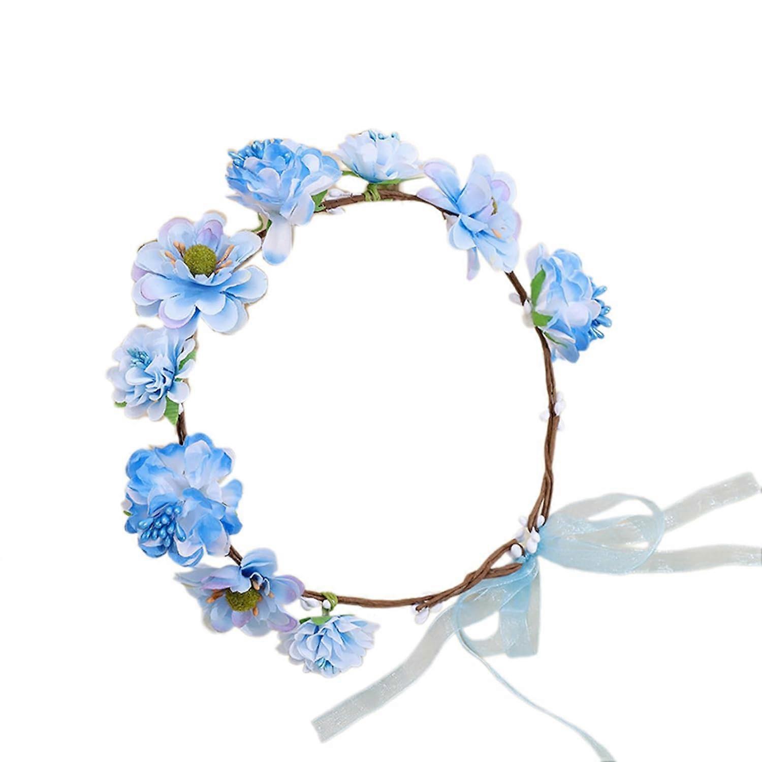 Bride Flower For Wedding Floral Garlands Hair Wreath Bright Color Flower Headbands Women Bride Headwear Blue