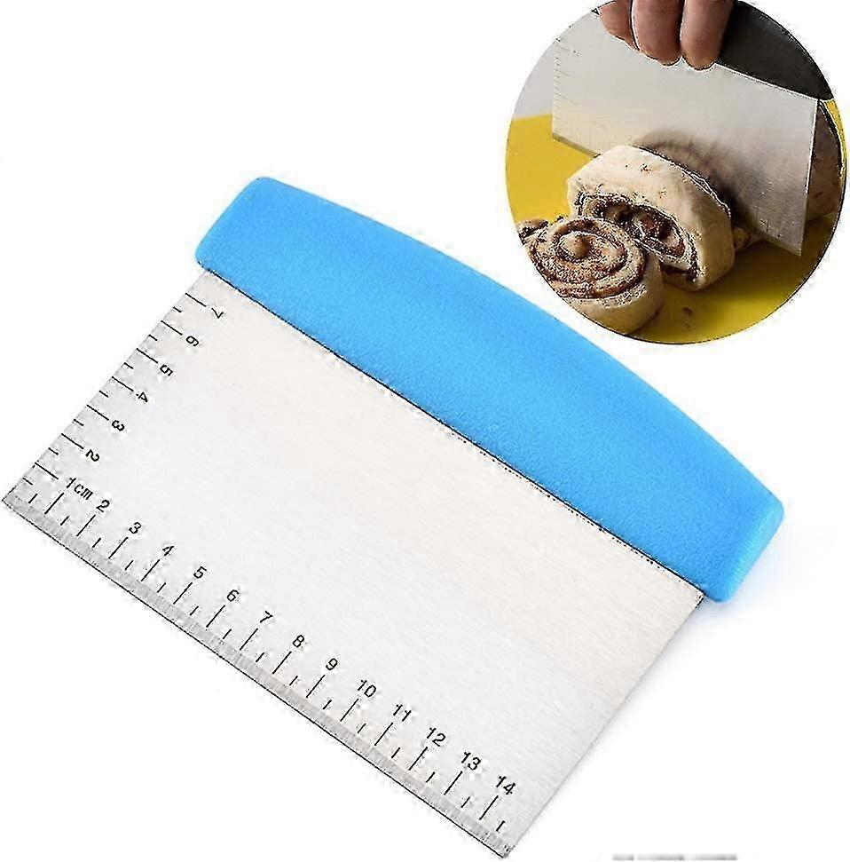 Stainless Steel Metal Grill Scraper - Ideal as a dough cutter for bread and pizza dough - Multi-Purpose Kitchen Tool for Flat Grill Plate (Blue) hwy 2