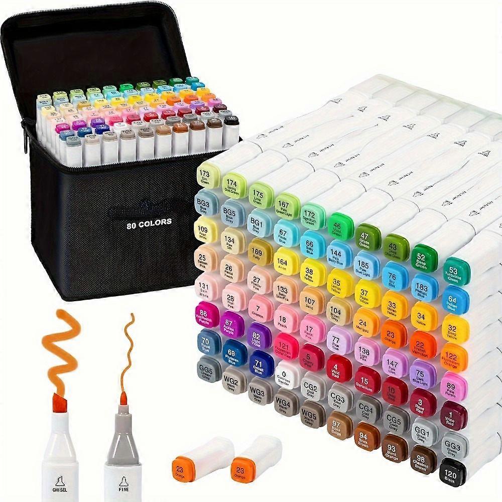 80pcs Double-Headed Pens Coloring Marker Set with Storage Box, Felt Tip Pens, Markers, And Drawing Pens Art Supplies, Office Supplies Cartoon Perfect