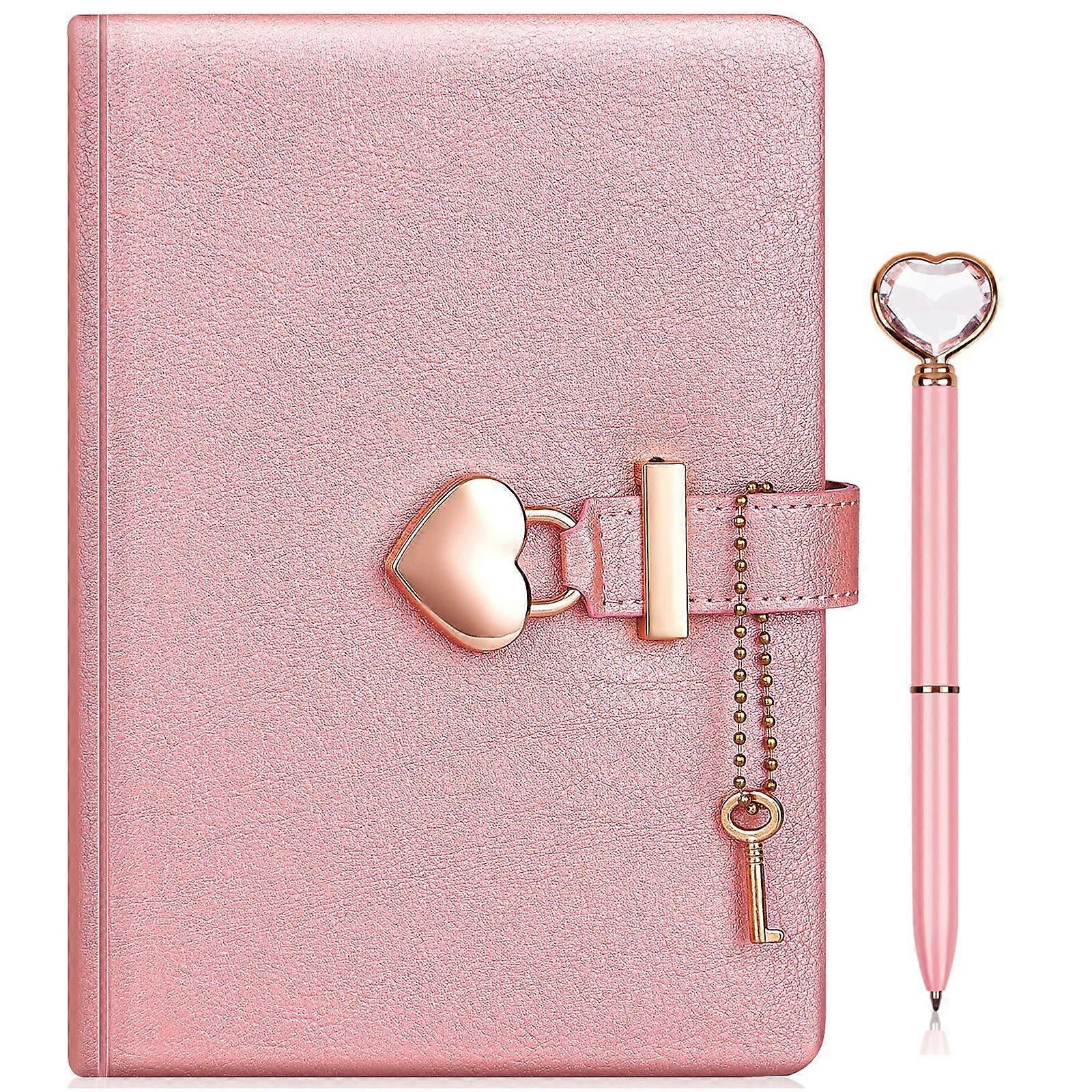 Lovely Heart Lock Journal & Pink Heart Drill Ballpoint Pen Set - Perfect Gift for Any Occasion!