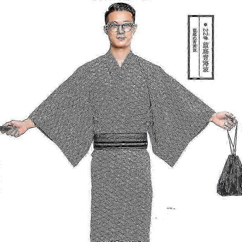 Men's Cotton Yukata Kimono Robe for Spring Summer Home Nightwear, Traditional Japanese Long Dress Robe 25-26