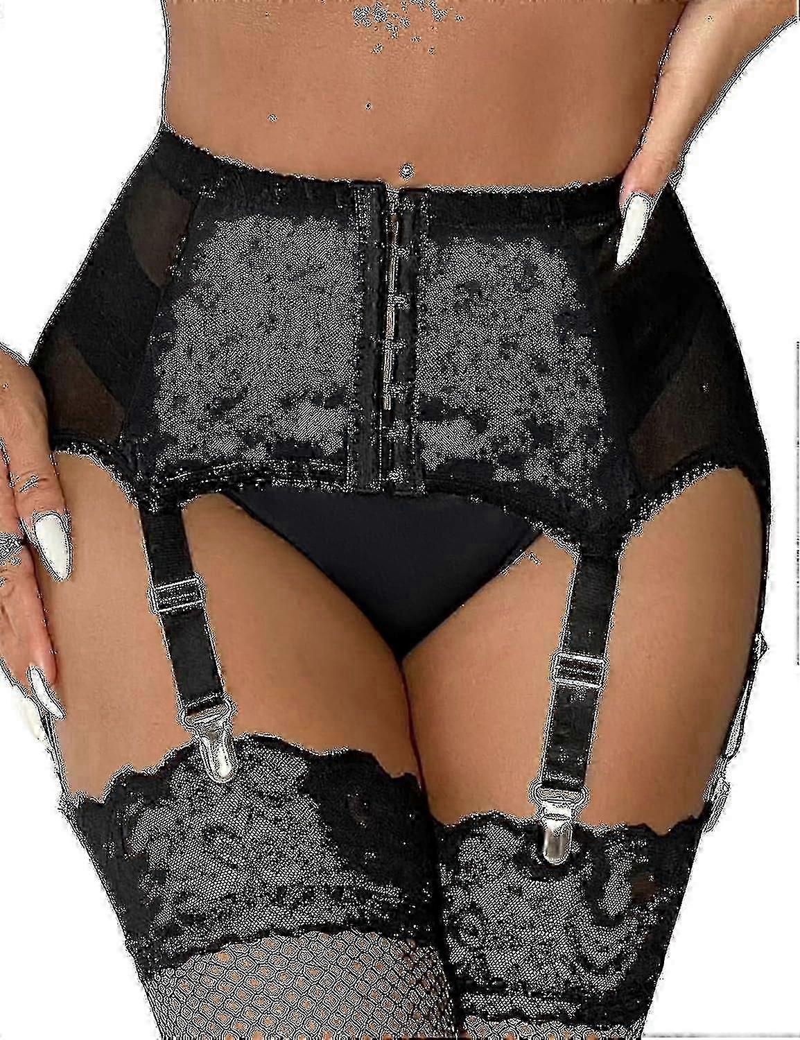 Women's Garter Belt Plus Size Lace Garter And 6 Metal Clips Adjustable Underwear Garter Suspenders U 25-26