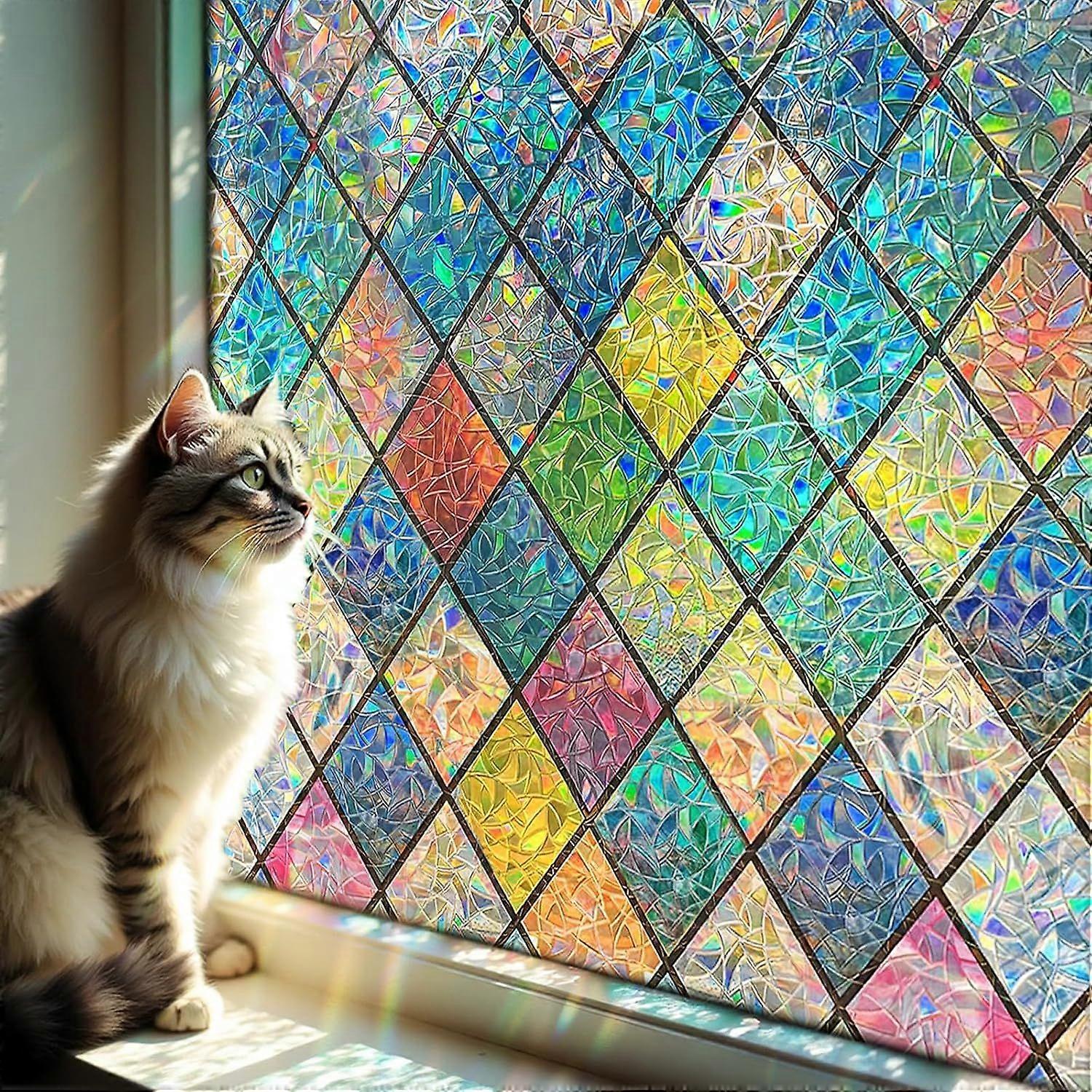 Rainbow Effect Window Film with Diamond Pattern 45 x 100cm Electrostatic Window Film Anti-Ultraviolet for Offices, Bedrooms