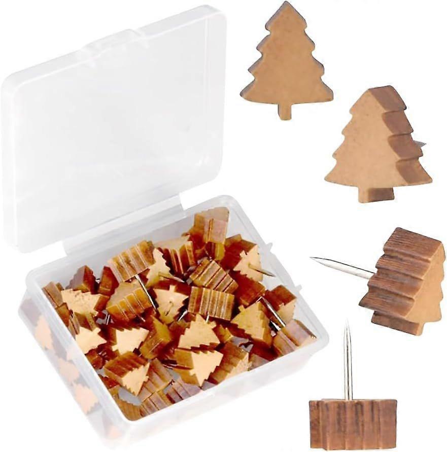 Set of 50 decorative wooden pushpins in the shape of a Christmas tree for bulletin boards - For cork boards - For bulletin boards