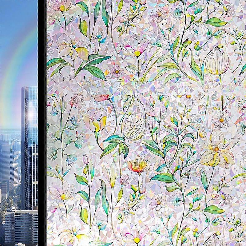 45x100 cm Privacy Window Film - Static Cling Window Film, Electrostatic Adhesive Decorative Film for Kitchen, Bedroom, Bathroom, Rainbow Floral Patter