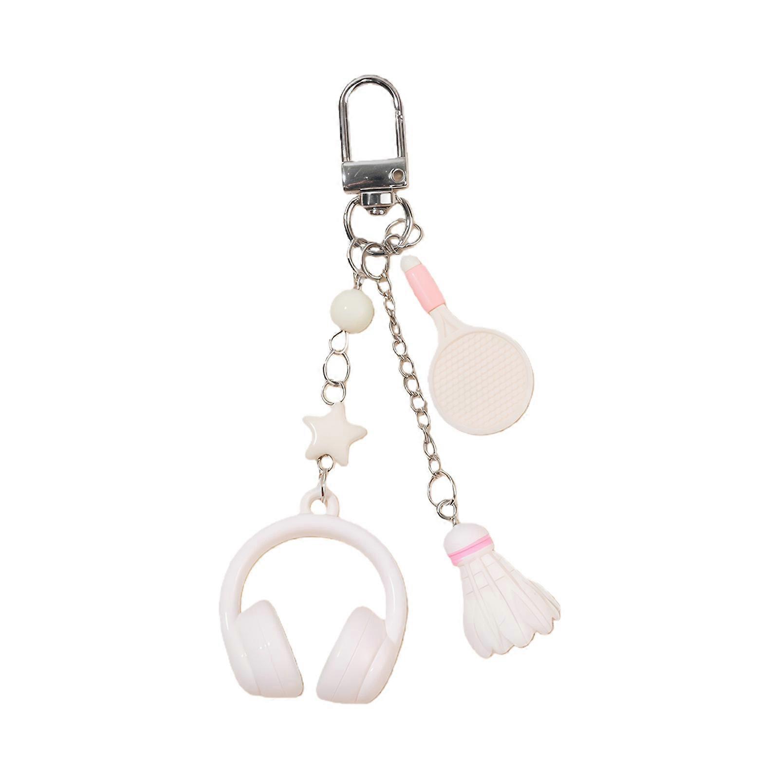 Alloy Resin Keychain Pendant Suitable for Sports Music Enthusiasts Present Featuring Creative Headphones Badminton Theme White