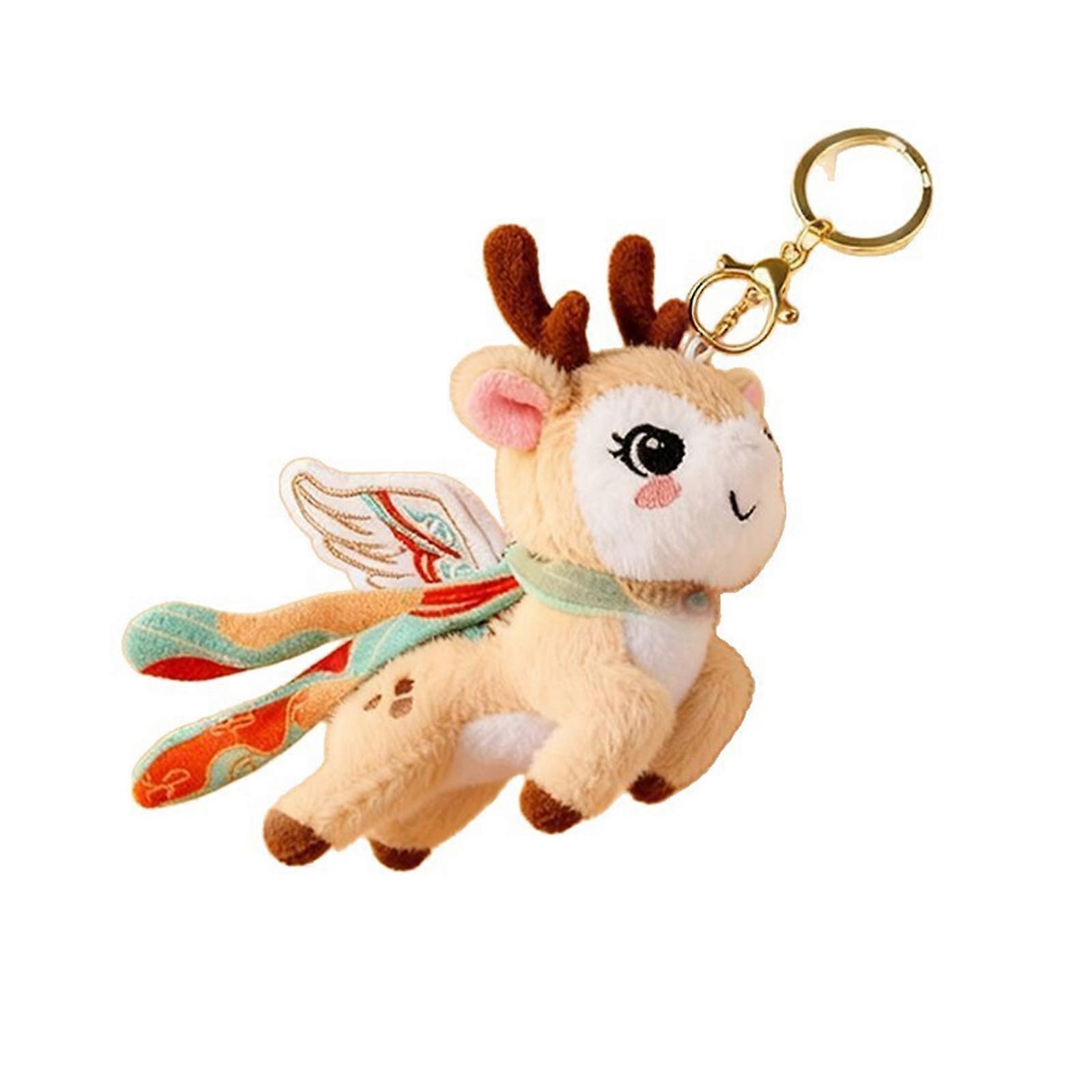 Plush Cats/Deer Key Chain Soft Animal Toy Bag Charm Handmade Wallet Hanging Ornament Accessory for Cartoon Enthusiasts Multicolor