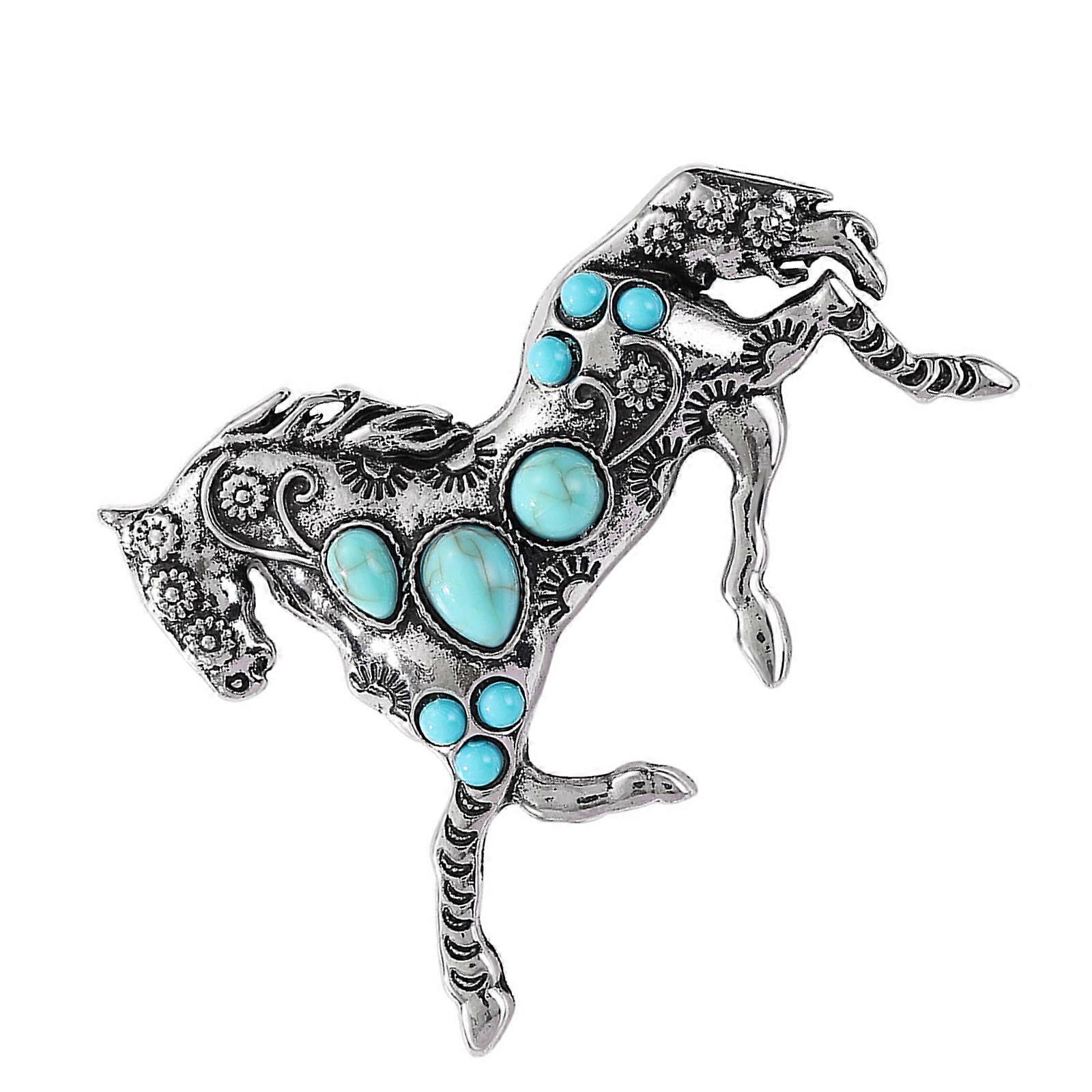 Lovely Horse Design Brooch Corsage Featuring Simulated Turquoise Accent for Equine Fan Stylish Wardrobe Addition Silver