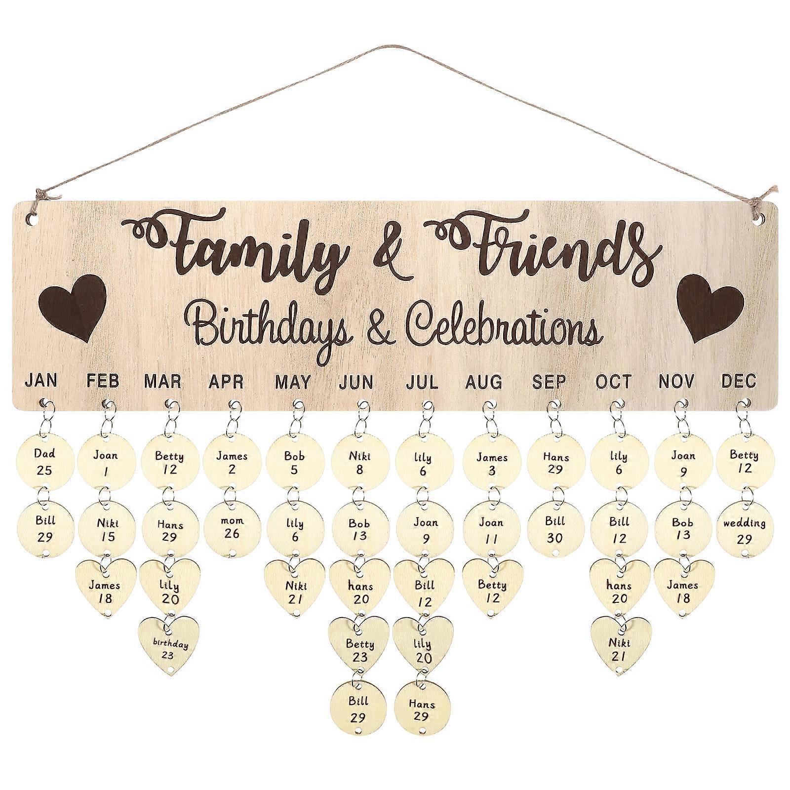 Wooden Birthday Anniversary Reminder Board for Date Tracking 1Set Beige