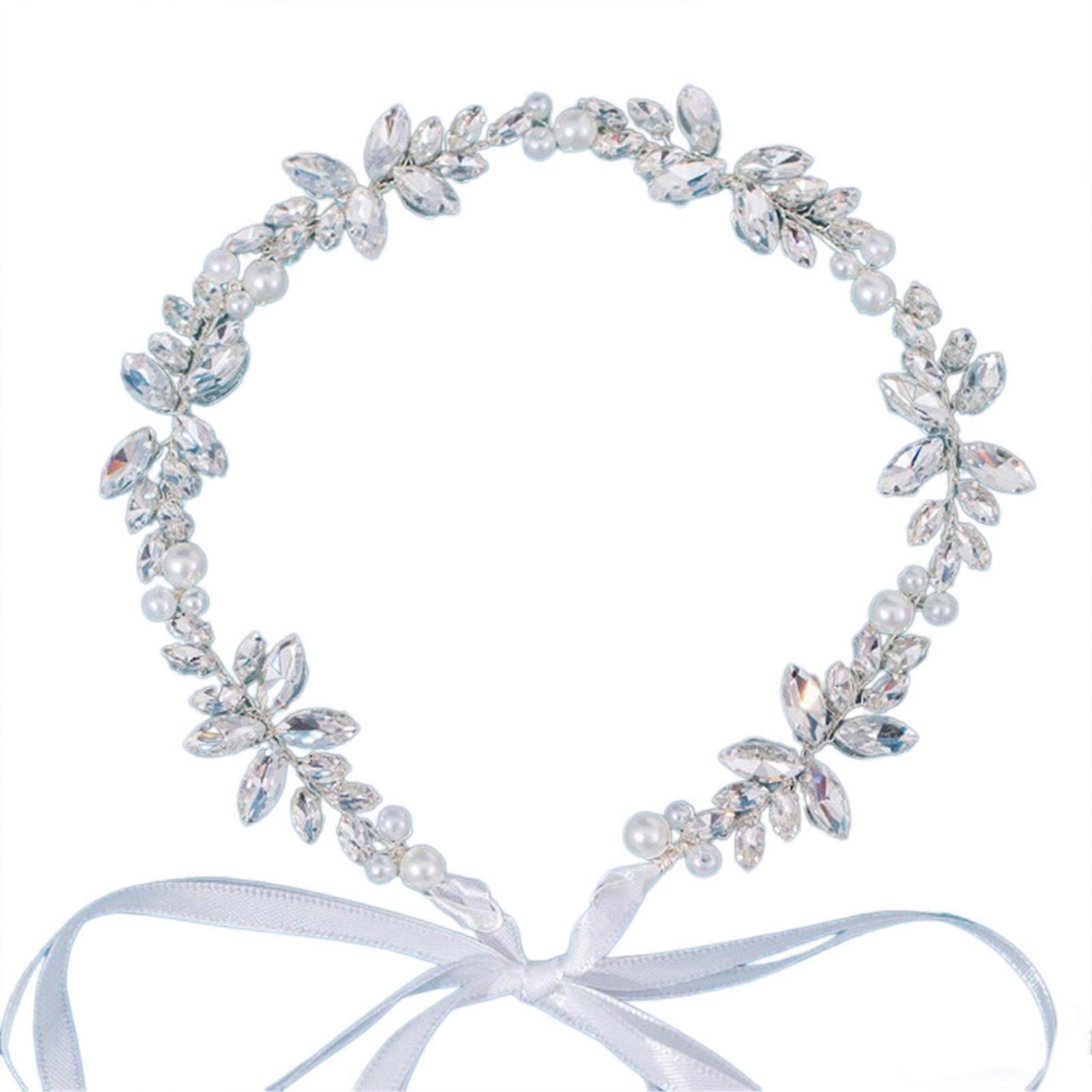 Bridal Wedding Crystal Headpiece with Lace Ribbon, Wedding Vine-Hairband Bridal Hair Accessories for Women and Girls