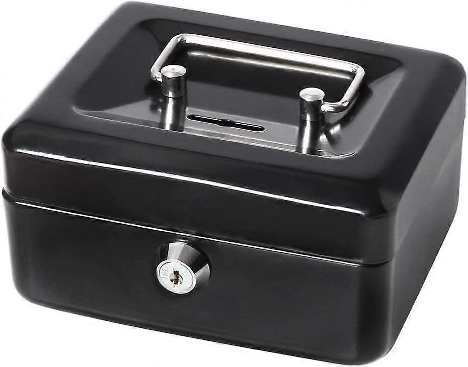 Cash Box with Slot for Kids, Decaller Small Money Box with Money Tray & Key Lock, 11.5*8.5*5.8cm, Black