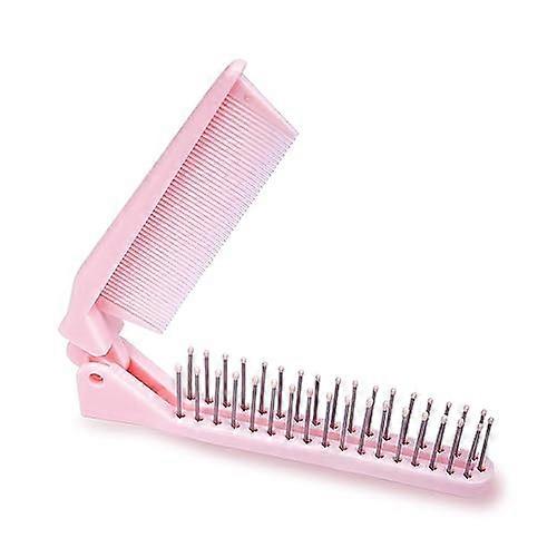Portable Travel Mini Hair Brush - Compact Foldable Double-Headed Detangling Comb for Purse, Bags - Pocket-Size for Women and Girls (Pink)-15794