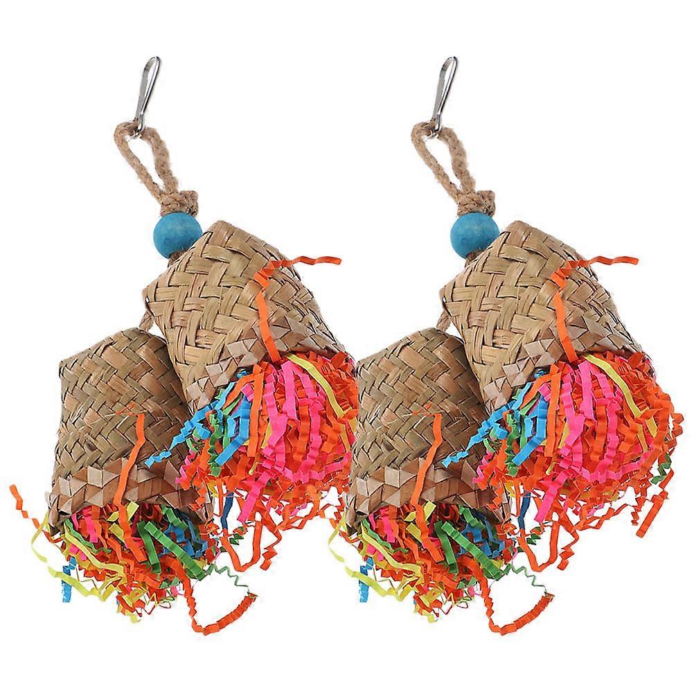 Jouet à mâcher suspendu pour perroquet, jouet en bois à déchiqueter, lot de 2 pour amuser les oiseaux en cage.