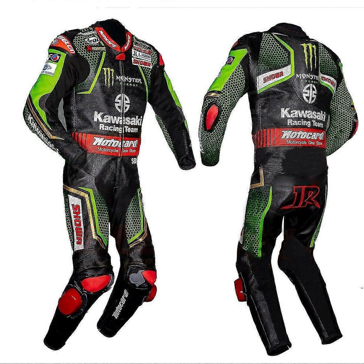 • Leather 1.2~1.3mm grain  used •Original YKK Zipper •Polyester Mesh Lining. Molded Metal Inserts.                                                                 •Removable padding •CE Approved Paddings at both  elbows, shoulders and back •Safety Pads on knees and  to protect knee caps •Removable padding at  knees •Stretch panels  at the waist •8 & Full inch zipper for connecting to  leather trousers   •Stretch panels  at the waist •Recommended for  racing bikers