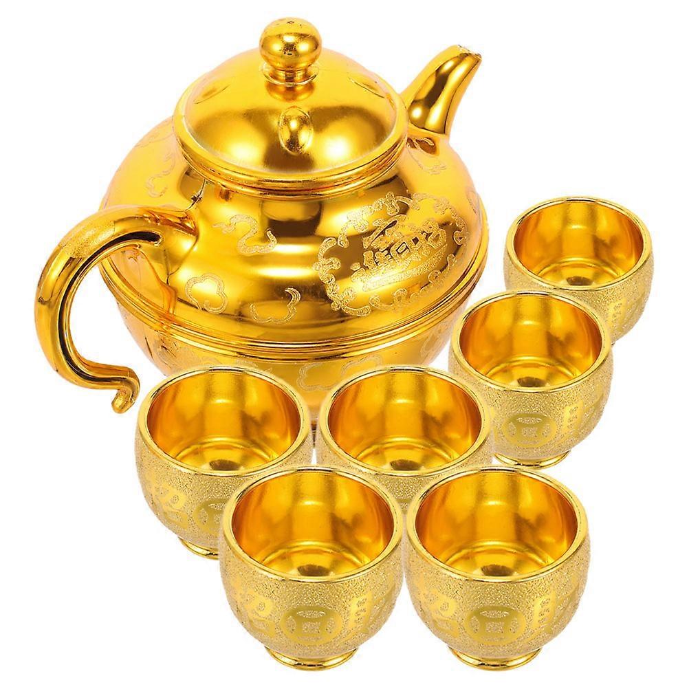 Offering Teapot and Cup Set for Drinking with 1Set of Golden Worship Accessories