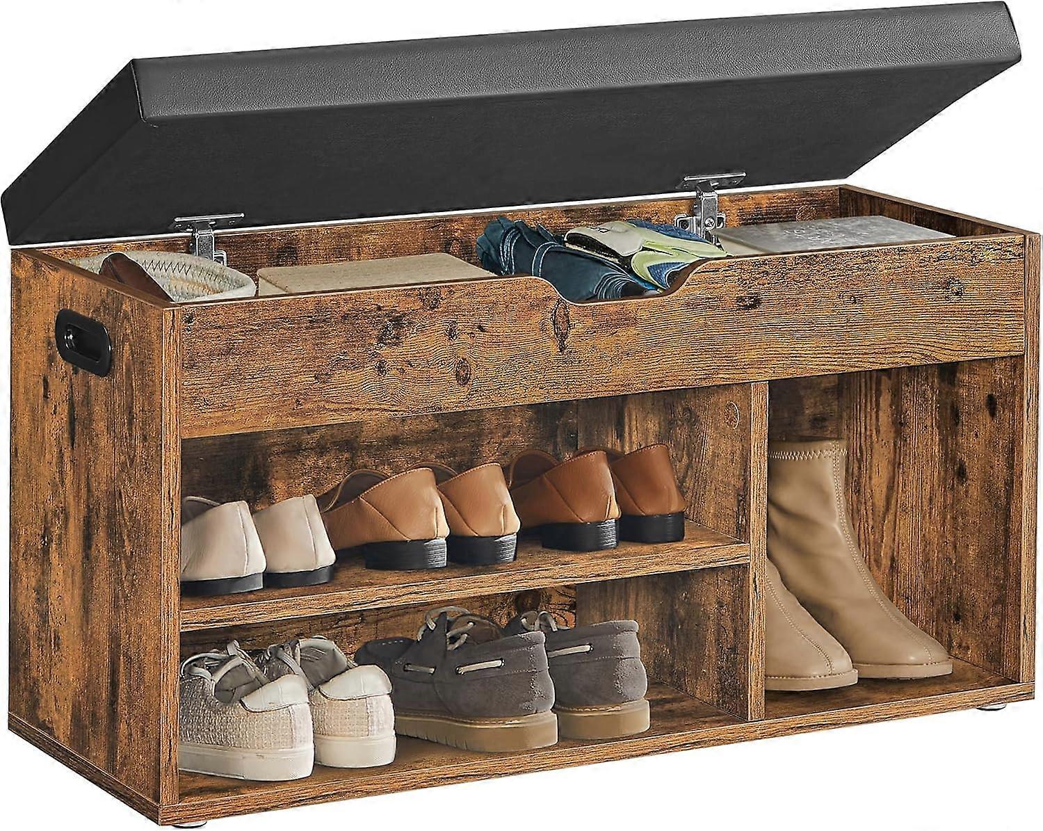 Shoe Bench with Cushion, Storage Bench with Padded Seat, 3 Compartments, Hidden Storage, Shelves, Living Room Lounge Hallway Bedroom, Load Capacity 15