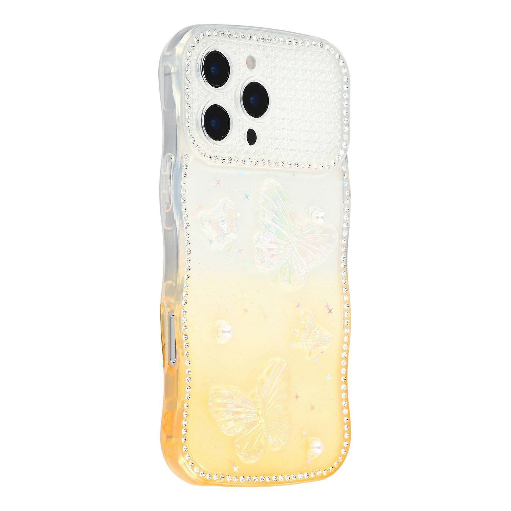 For iPhone 16 Pro Max Case Epoxy Butterfly Design Rhinestone Decor Gradient Shockproof TPU Phone Cov