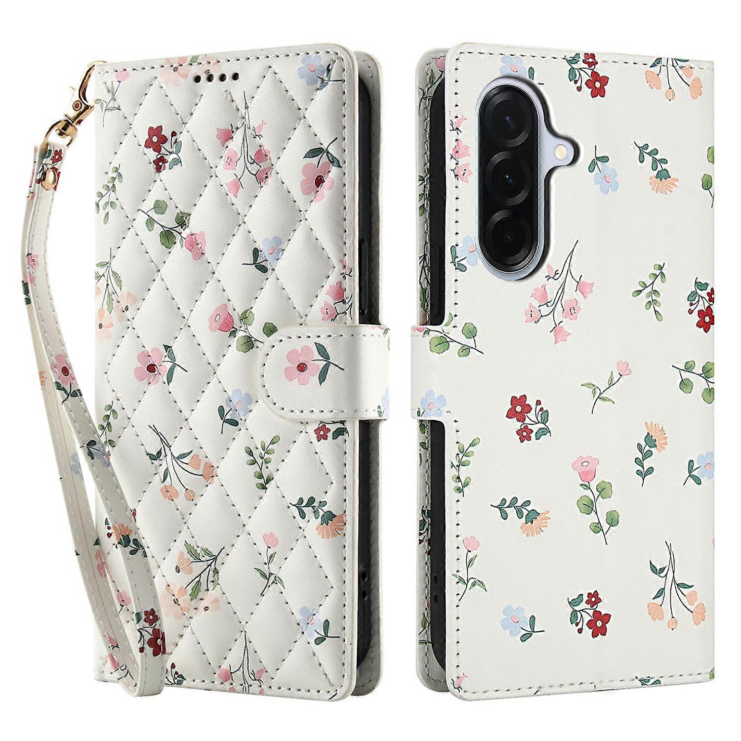 For Samsung Galaxy A57 Wallet Case Rhombic Floral Design Leather Flip Phone Cover with Strap