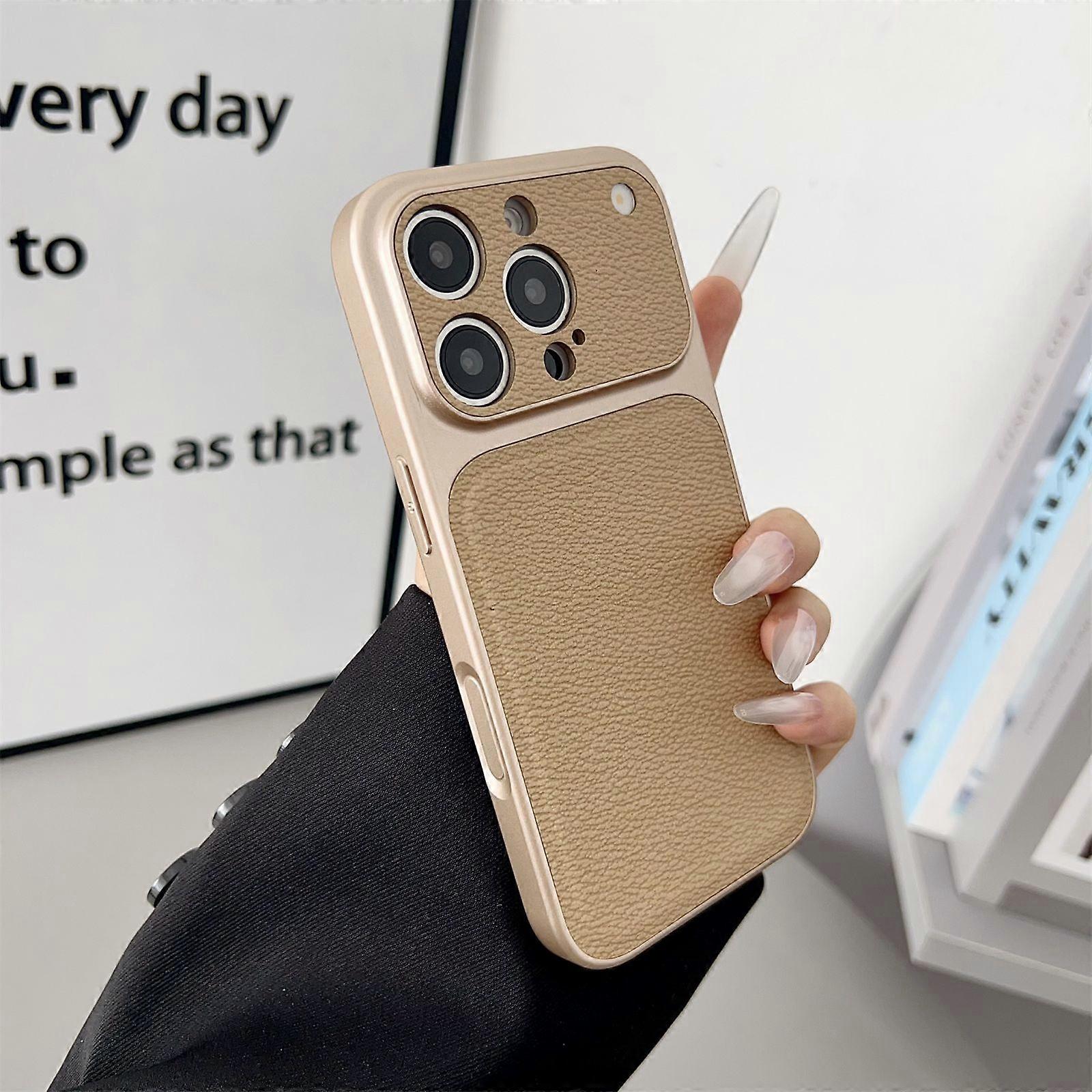 For iPhone 16 Pro Case Precise Cutouts Textured PU Leather Coated PC + TPU Phone Cover