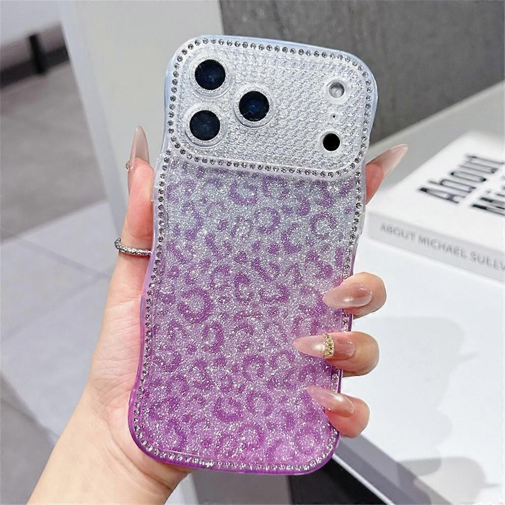 For iPhone 17 Pro Case Rhinestone Decor Wave Frame TPU Phone Cover with Leopard Print Glitter Card