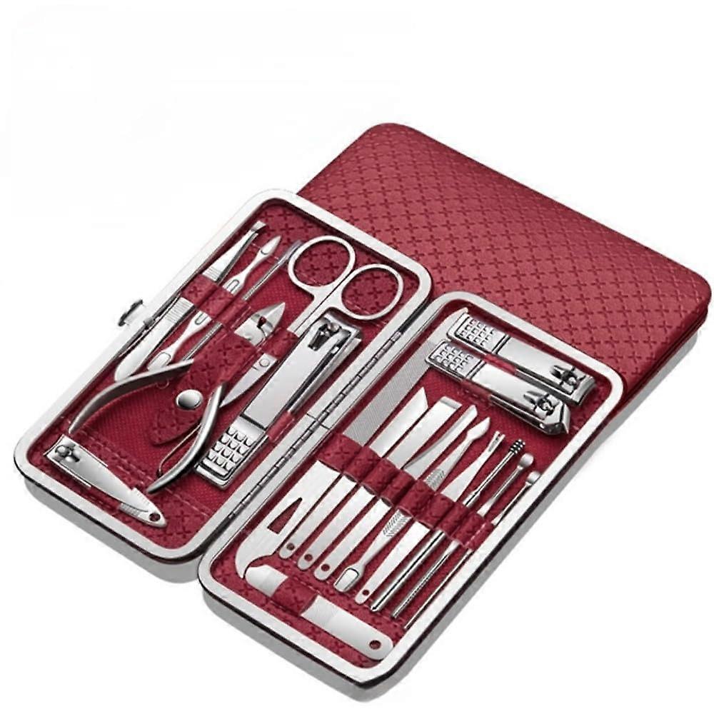 Manicure Set 19Piece Stainless Steel Nail Clippers with Leather Case for Professional Grooming