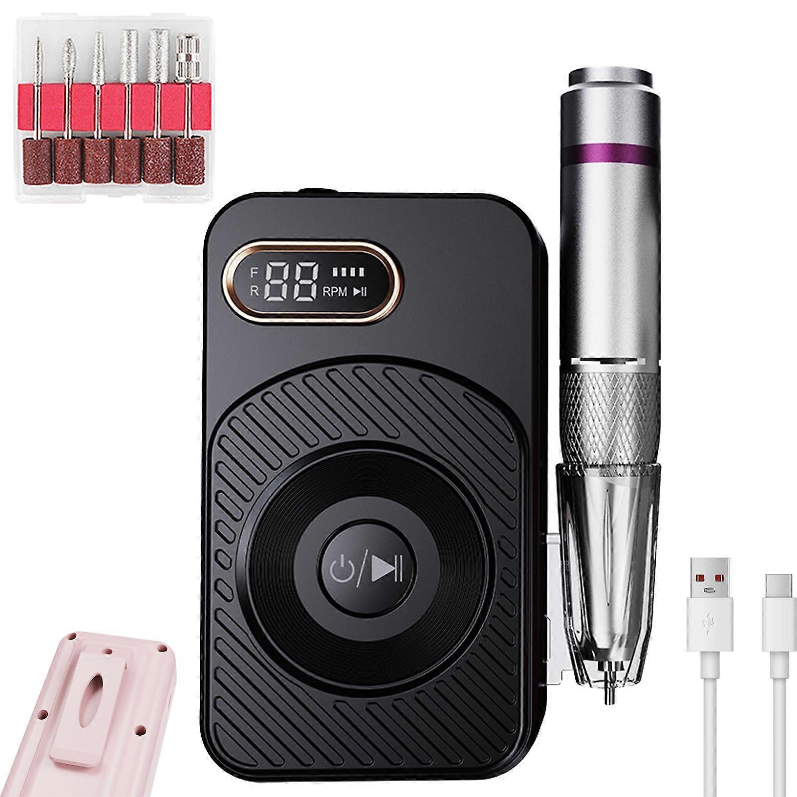 Professional Nail Drill 45000RPM Cordless Rechargeable Electric Nail File for Acrylic and Gel Nails with Bits and LCD Display