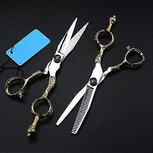 Professional Barber Scissors Set 6 Inch Gold Crown Ergonomic Handle Carbon Stainless Steel Blades