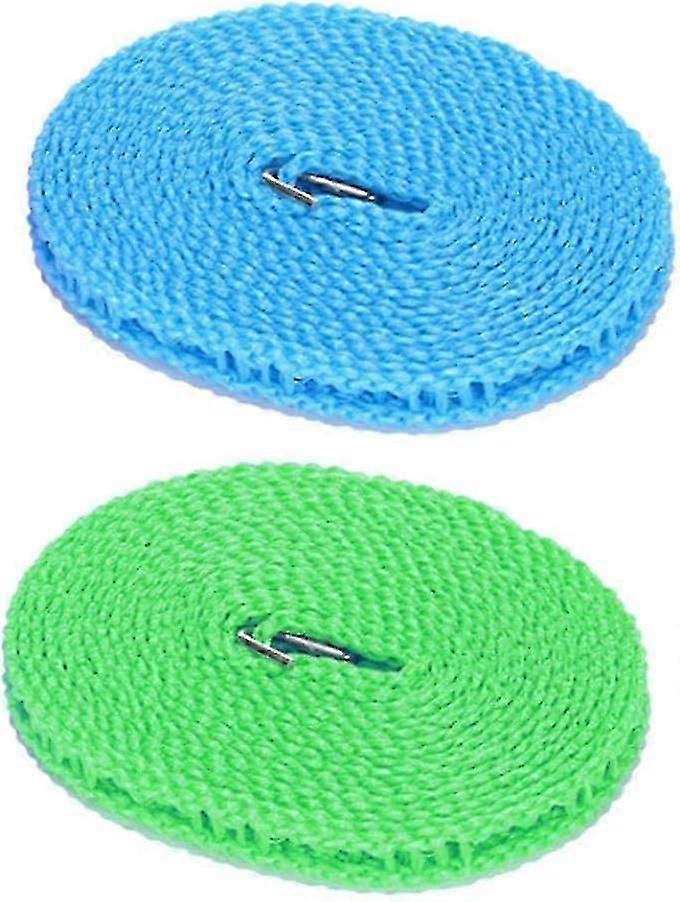 2 Pieces Windproof Clothesline, Nylon Clothesline, Portable Travel Clothesline For Indoor And Outdoor Camping Clothes Hanger (blue, Green, 5m)