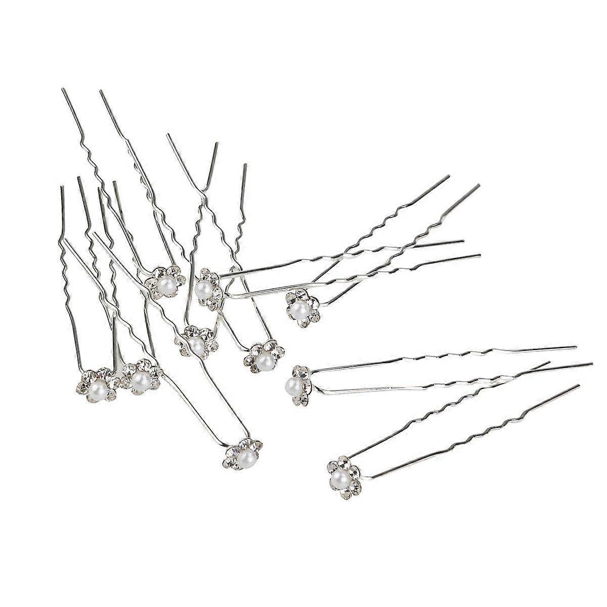 The item is a set of 10pcs delicate women’s bridal U-shaped hairpins, which are mainly made of durable hard alloy, and decorated with pearl and rhinestones just like a flower to make it more beautiful and attractive. Therefore, wearing the crystal pearl hairpin in some occasions, you will look more charming and graceful. Features - 10 pieces of the U-shaped hairpins in one set will be sold together. - - Material: durable hard alloy, rhinestone and pearl. - Size: 6.3 * 0.8CM.(Length* Diameter) - Suitable for most women, ladies and girls to wear. - Decorated with pearl and rhinestones just like a flower to make it more beautiful and attractive.. - Wearing the crystal pearl hairpin in some occasions, you will look more charming and graceful. - Simple and practical design, and easy to use. Package list: 10 * Women's Bridal Pearl Rhinestone Decorated U-Shaped Hairpins Hair Clips (Silver)