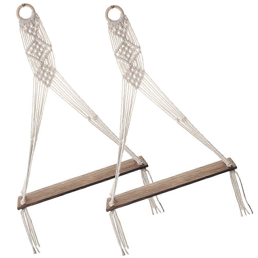Macrame Wall Shelf Floating Hanging Shelf for Bedroom 6Pcs Wooden Storage Shelves
