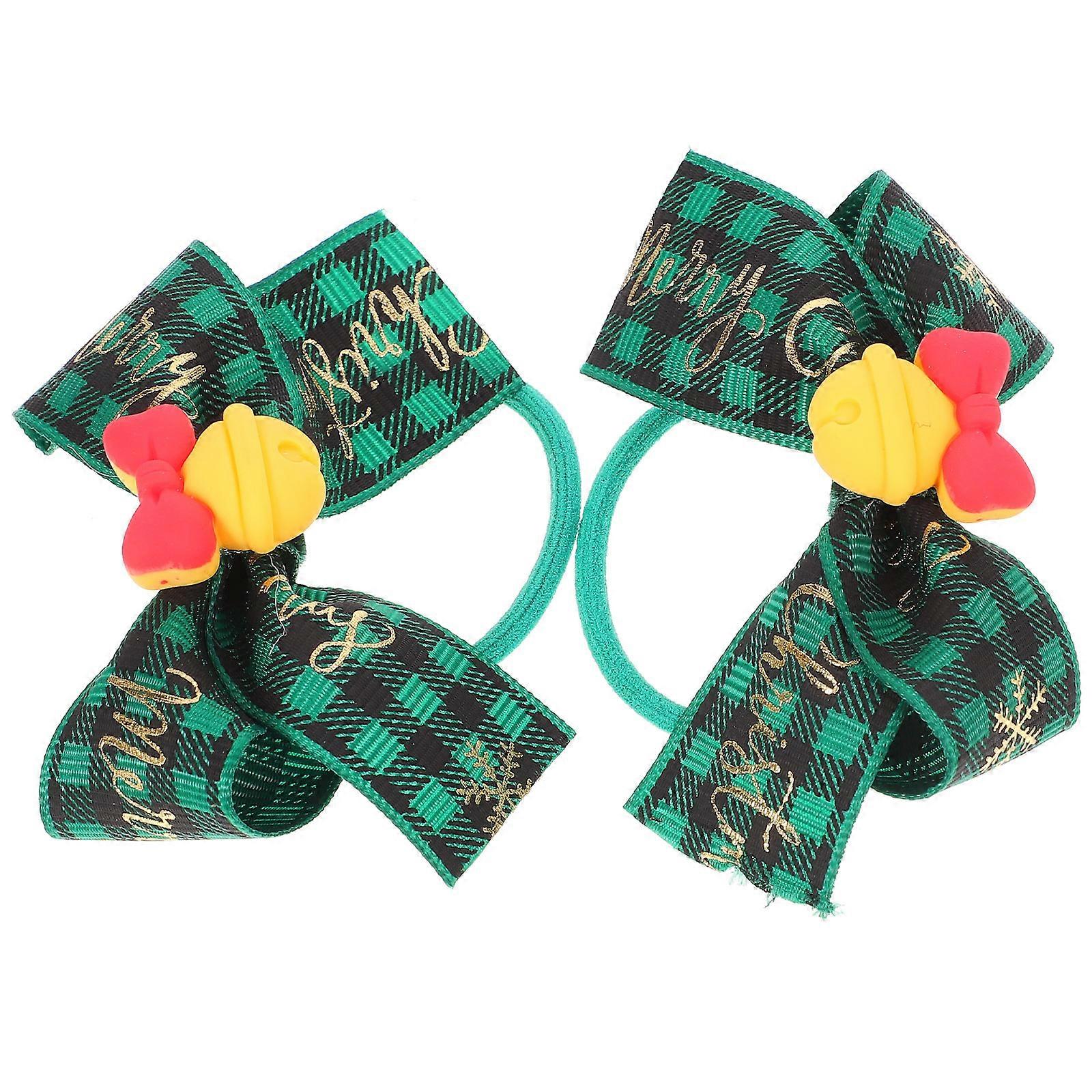 Christmas Bow Hair Ties for Girls Decorative 2Pcs Elastic Ponytail Holder