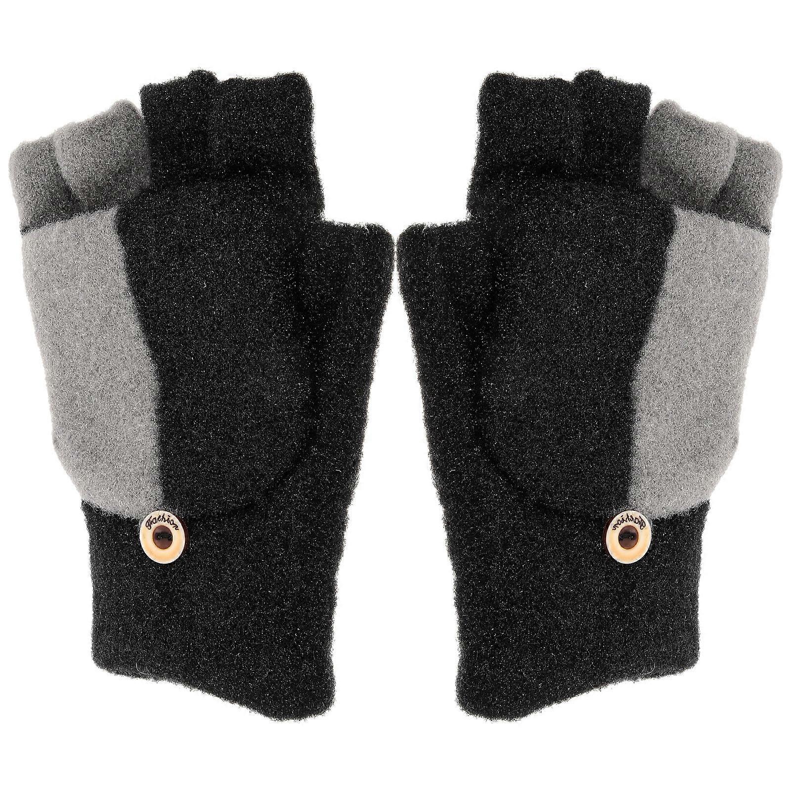Knitted Warm Gloves Fingerless Gloves for Women 1Pair Black Wool