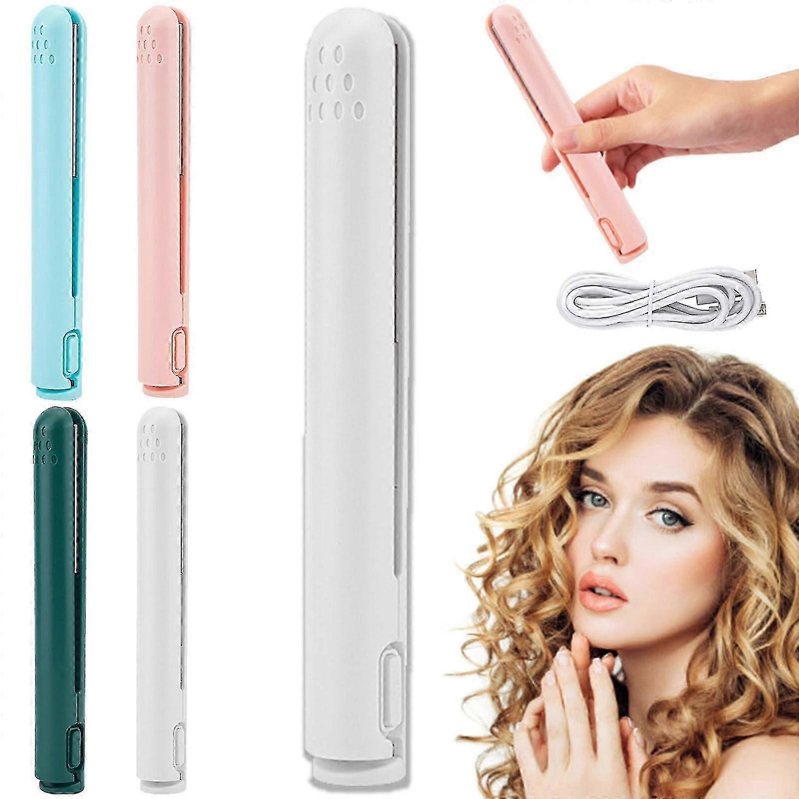 New 2 in 1 Mini Hair Curler, Ceramic Mini Hair Curler, Mini Portable Hair Iron Hair Straightener Curler--Green HK