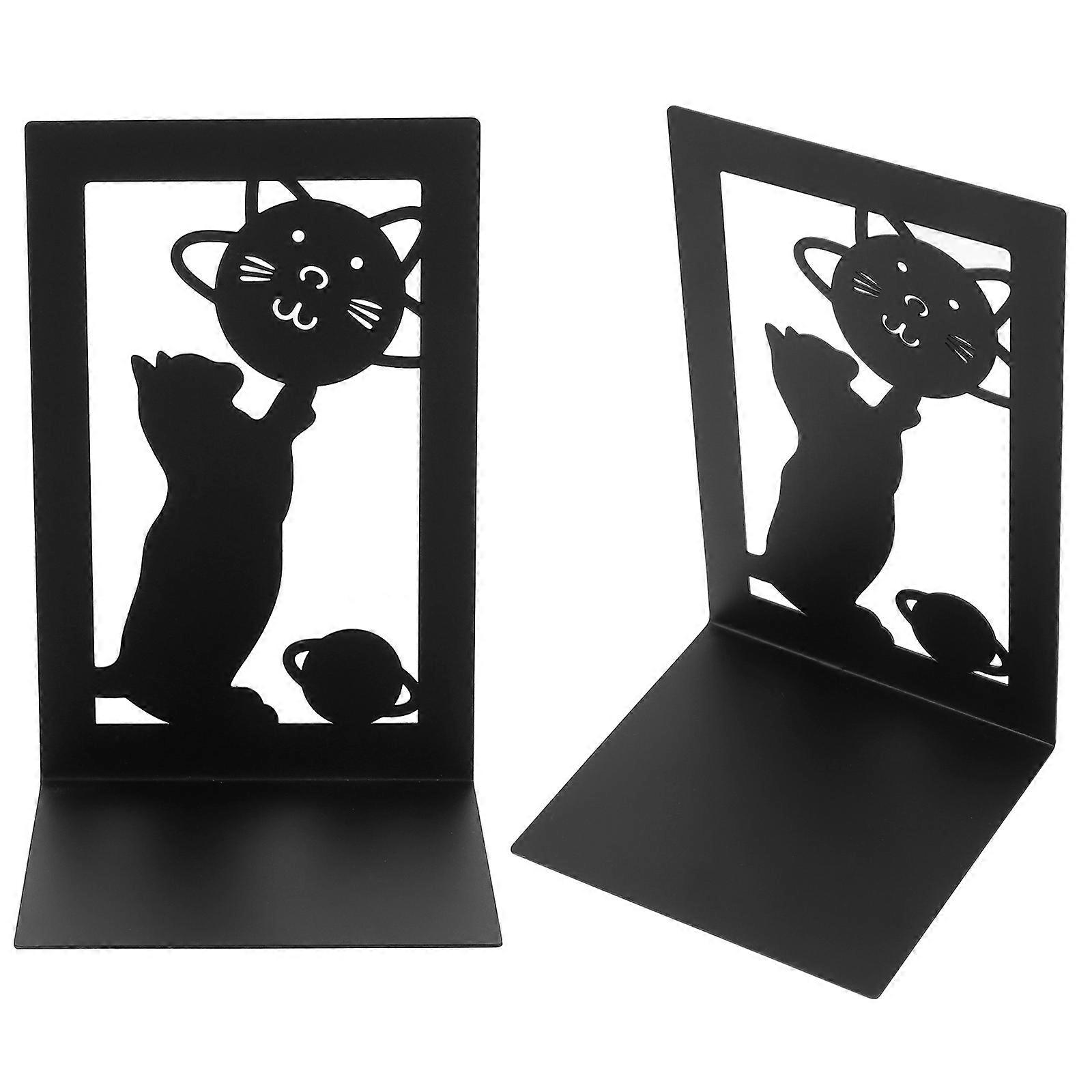 Desktop Metal Bookends Iron Book Supports for Storage Use 2Pcs Black