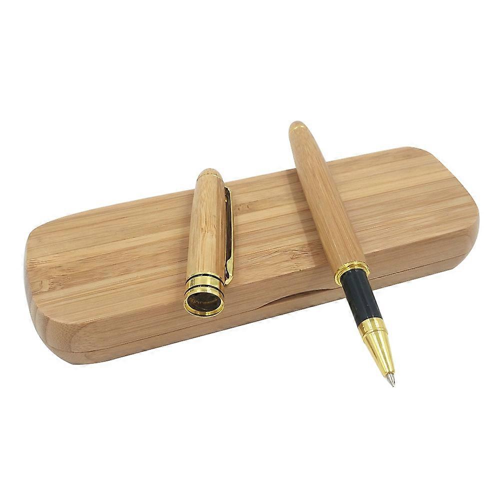 Bamboo Gel Pen Set with Gift Case for Writing Elegant Light Brown
