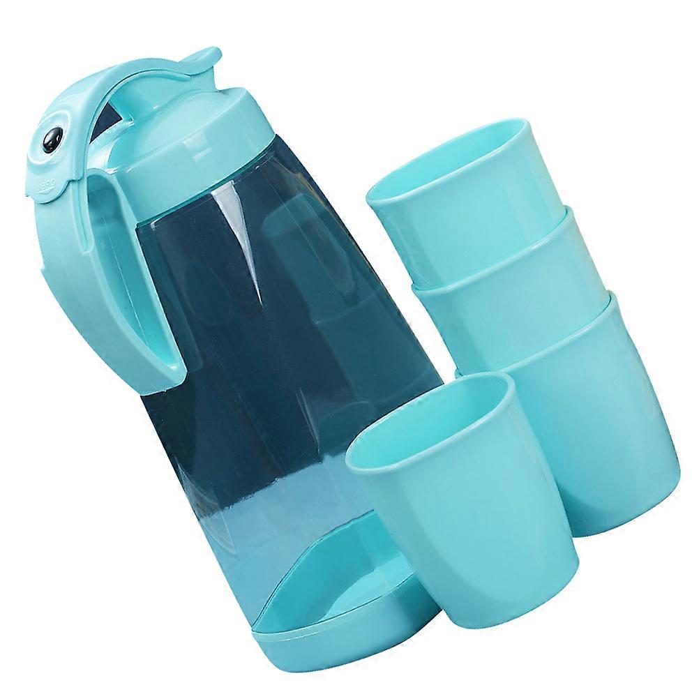 These items are some kettle and cups set, they are made of ABS AS PP and silicone materials, they are and practical. suitable for home etc. silicone ring, they have the good sealing effect. smooth handle, you will have the good holding touch. Feature - Color: Sky-blue - Material: ABS AS PP and silicone - Size: About 28x13.5x9cm. - They are made of ABS AS PP and silicone materials, you will use them for a long time. - Heavy calibre, You can clean them easily. - They are cold-resistant and . - Good kettle and cups for your choices. - With silicone ring, they have the good sealing effect. Package list: 1 x kettle 4 x cups