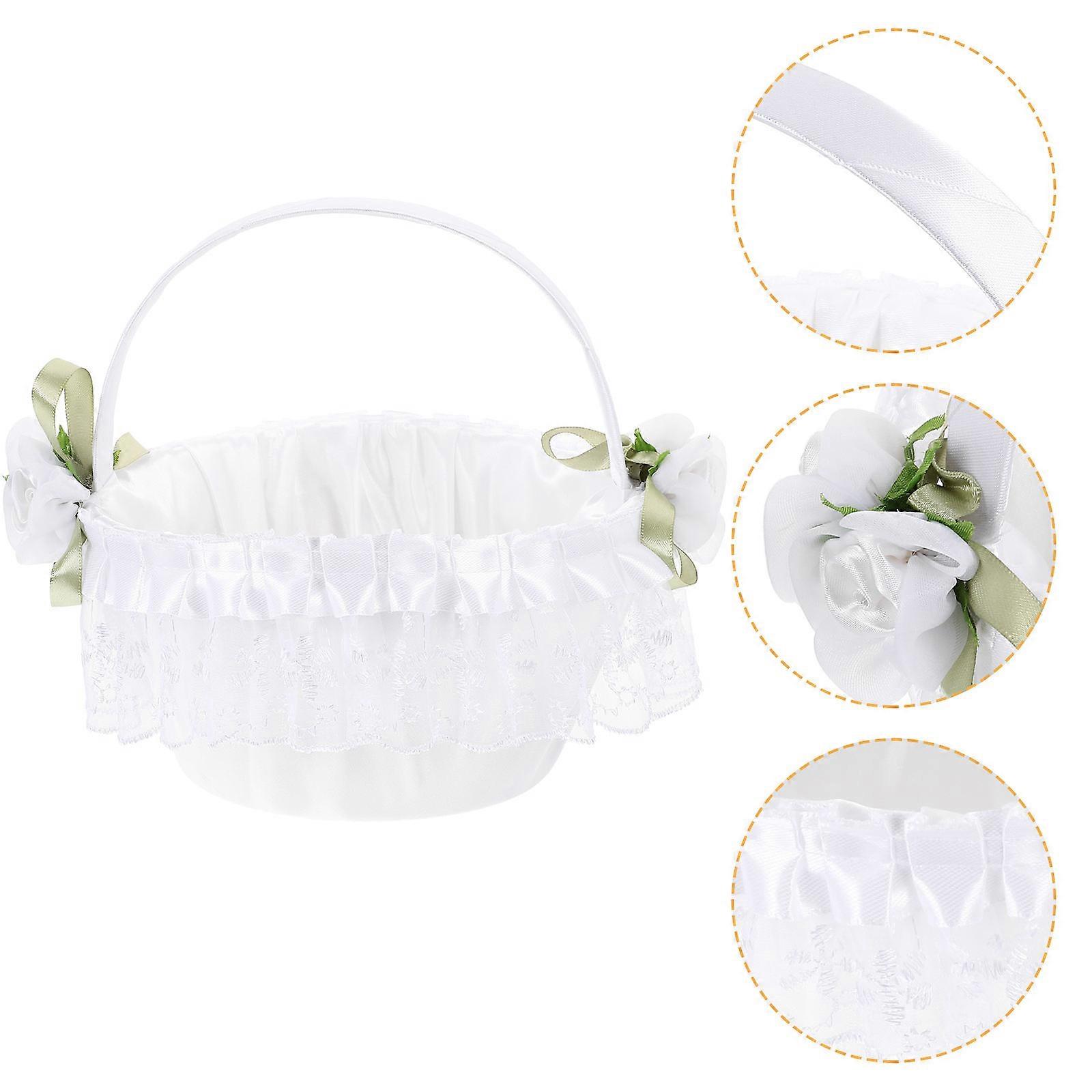 Small Wedding Flower Basket Rustic Elegant Wedding Basket 19.5x19.5x20cm White Color Handheld 1Set
